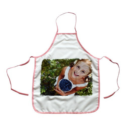 Grembiule da cucina in poliestere per bambini con bordo rosa. Area stampabile massima 30 x 40 cm