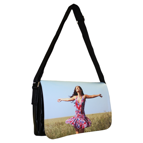 Borsa tracolla nera con area frontale personalizzabile. Area stampabile 33 x 25 cm circa