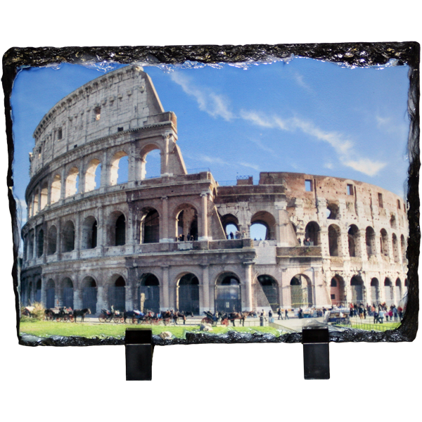 Roccia ardesia rettangolare opaca misura 15 cm x 20 cm con supporti. A causa del materiale naturale potrebbero esserci irregolarità o imperfezioni nella superficie.
