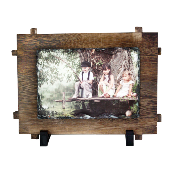 Ardesia 12x17 cm con cornice in legno. A causa del materiale naturale potrebbero esserci irregolarità nella superficie.