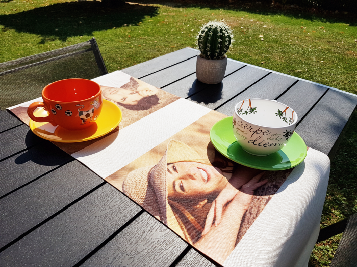 Runner in tessuto simile alla juta con stampa. Misura 40x130 cm circa