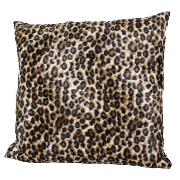 Cuscino quadrato 40x40 cm in poliestere con stampa personalizzata nel fronte e retro pelliccia leopardo.