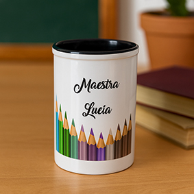 Portapenne in ceramica con interno nero. 8,5x12,7 cm. Area stampabile massima 9 x 20 cm