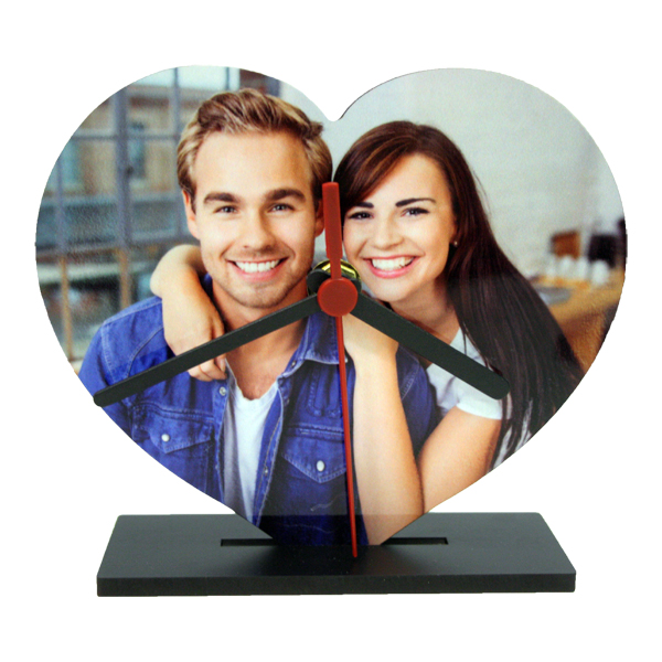 Orologio da scrivania a forma di cuore con basetta d'appoggio. Misure 13x15 cm circa. Spessore 6 mm
