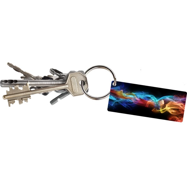 Portachiavi in plastica rettangolare stampato su entrambi i lati.