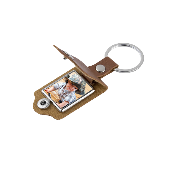 Portachiavi in similpelle marrone placchetta personalizzabile 2,3x3
